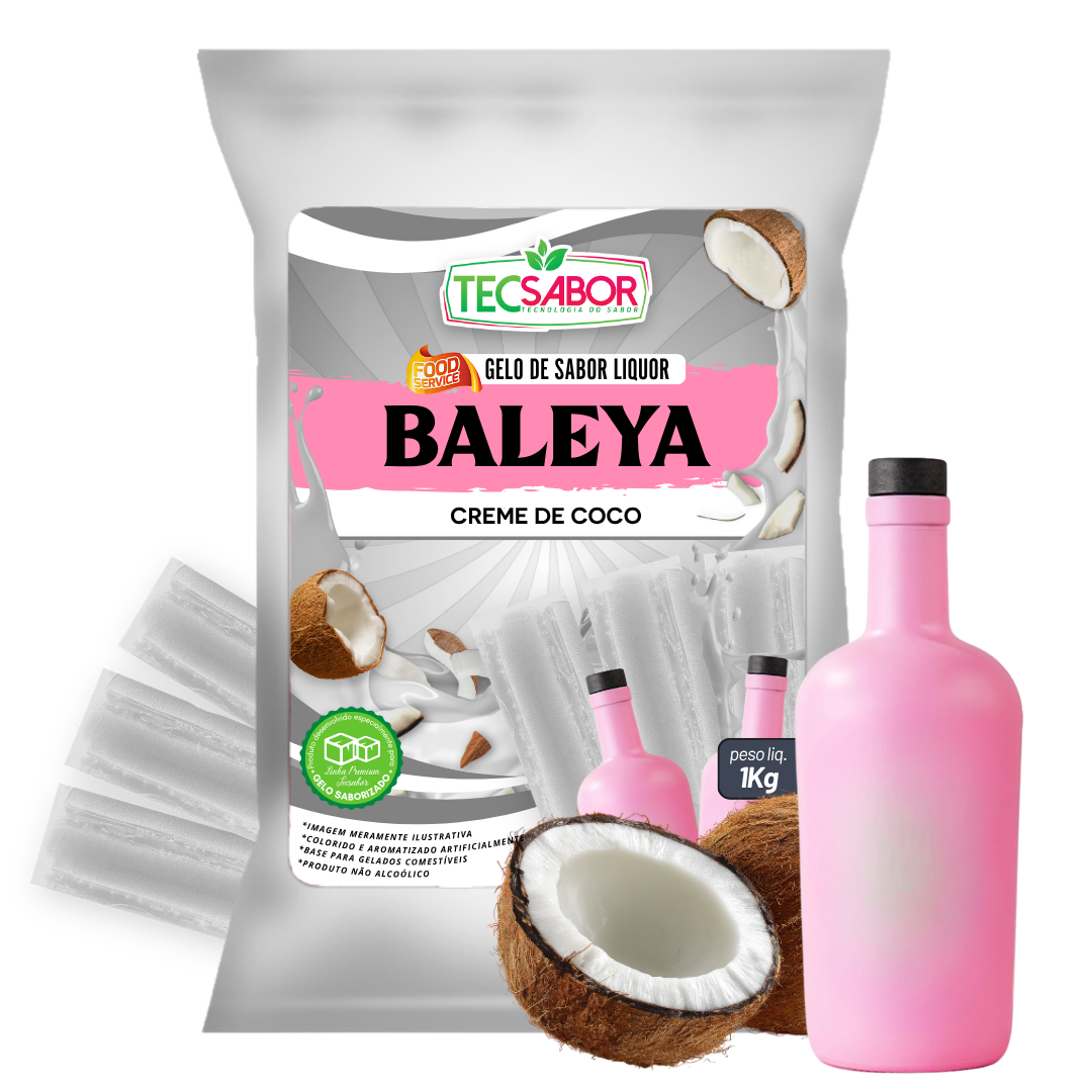 Base para produção de gelo de sabor baleya creme de coco. Ideal para bebidas e consumo direto. Não mela, não solta pó e garante sabor consistente do inicio ao fim do seu drink.