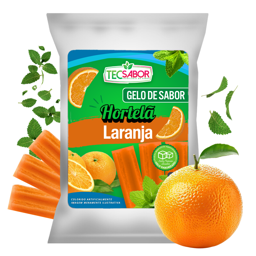 Base para produção de gelo de sabor hortelã com laranja. Ideal para bebidas e consumo direto. Não mela, não solta pó e garante sabor consistente do inicio ao fim do seu drink.