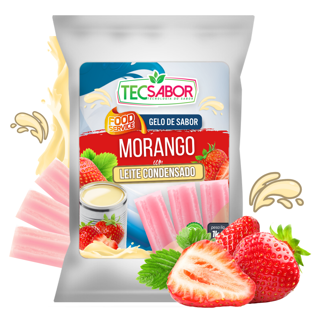 Base para produção de gelo de sabor leite condensado com morango. Ideal para bebidas e consumo direto. Não mela, não solta pó e garante sabor consistente do inicio ao fim do seu drink.