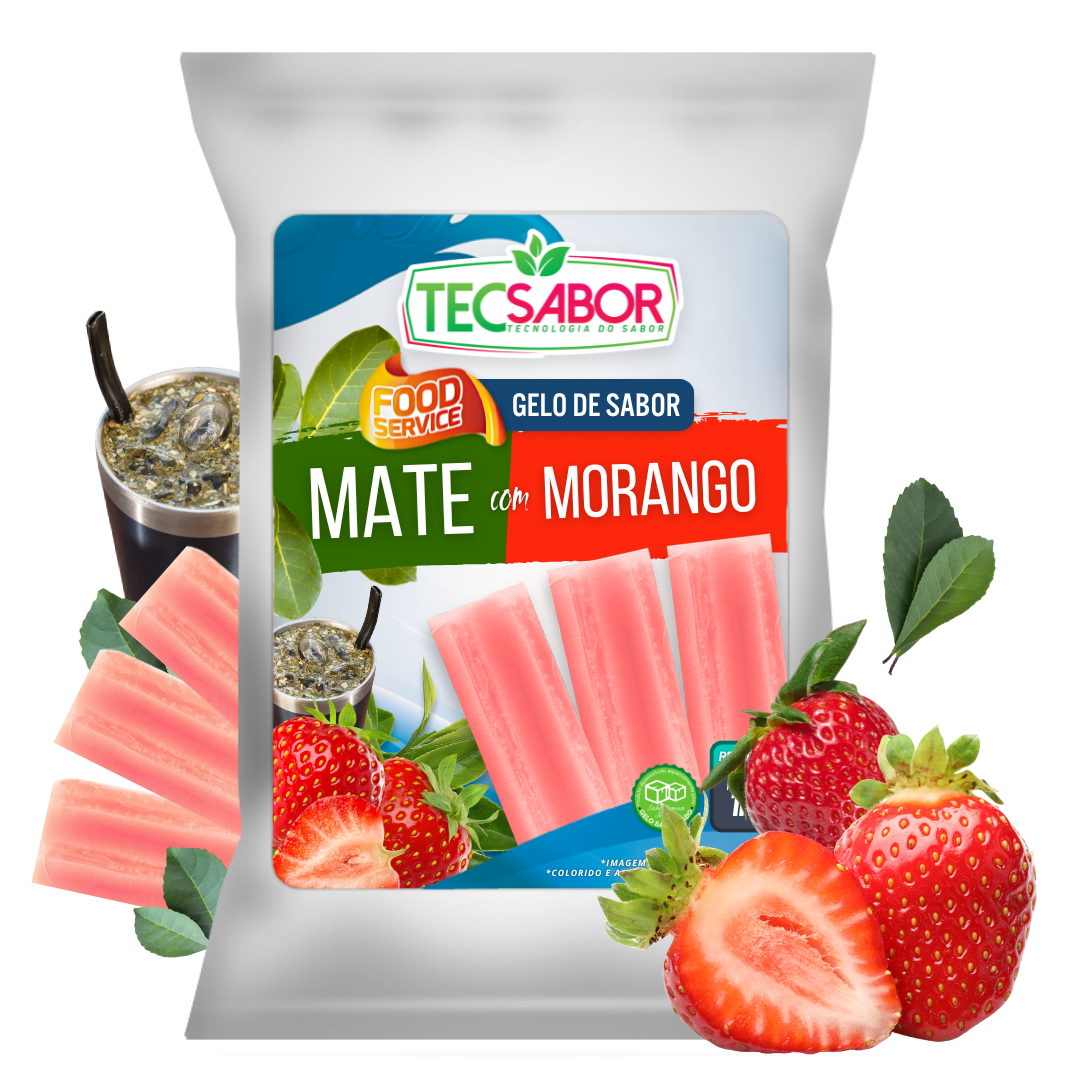 Base para produção de gelo de sabor mate com morango. Ideal para bebidas e consumo direto. Não mela, não solta pó e garante sabor consistente do inicio ao fim do seu drink.