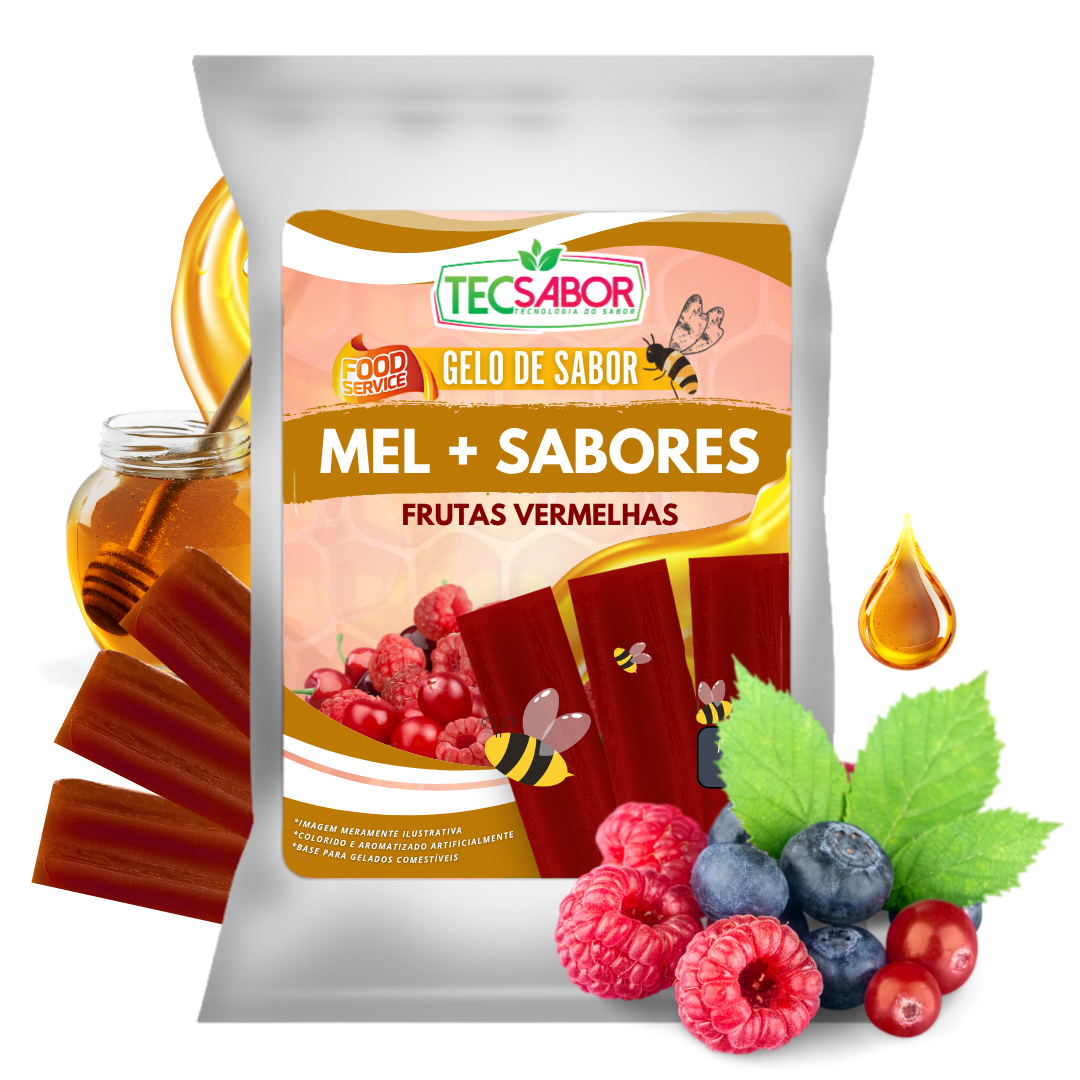 Base para produção de gelo de sabor mel com frutas vermelhas. Ideal para bebidas e consumo direto. Não mela, não solta pó e garante sabor consistente do inicio ao fim do seu drink.