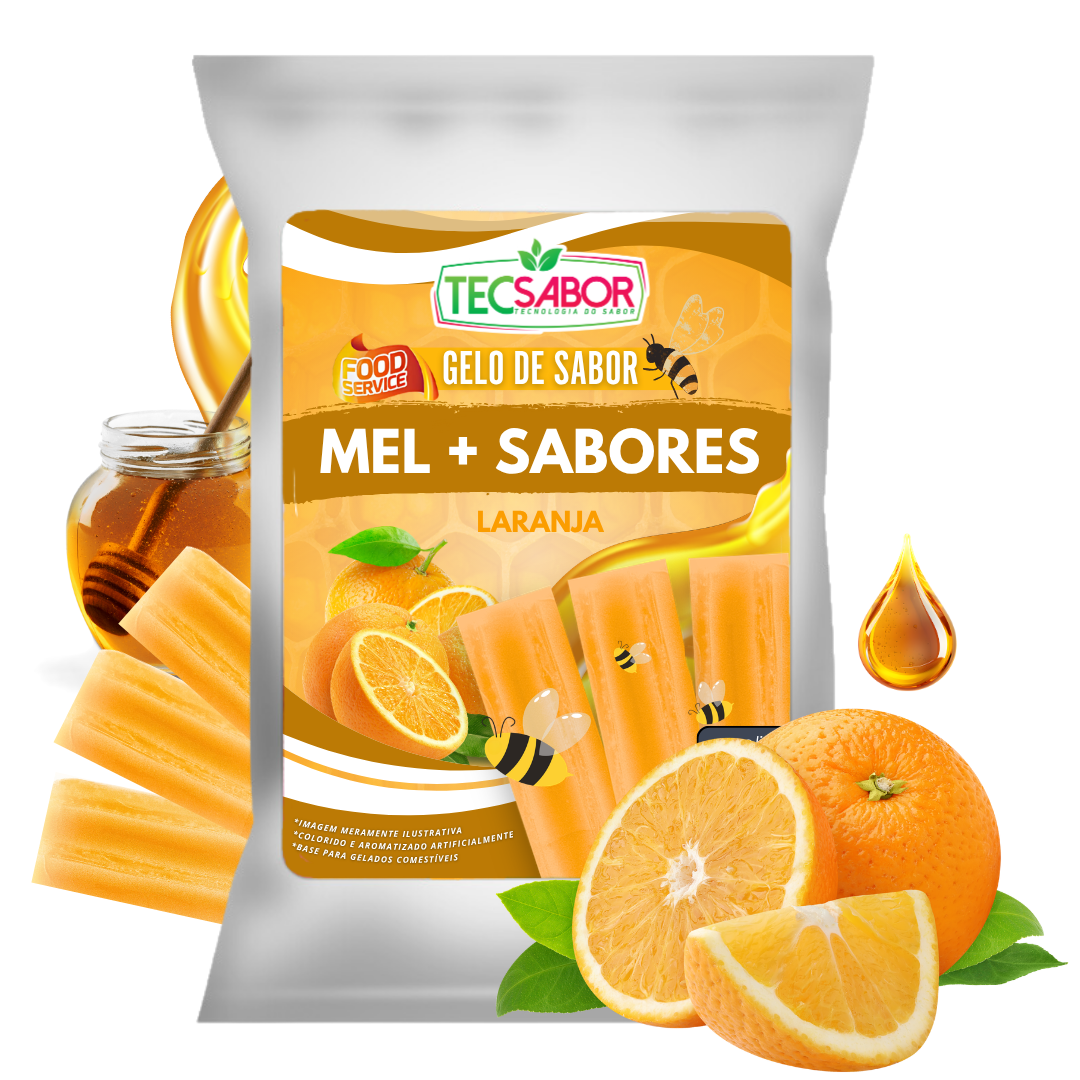 Base para produção de gelo de sabor mel com laranja. Ideal para bebidas e consumo direto. Não mela, não solta pó e garante sabor consistente do inicio ao fim do seu drink.