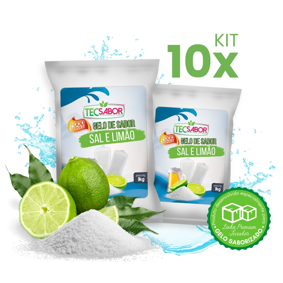 Kit com 10x bases para produção de gelo de sabor sal e limão. Ideal para bebidas e consumo direto. Não mela, não solta pó e garante sabor consistente do inicio ao fim do seu drink.